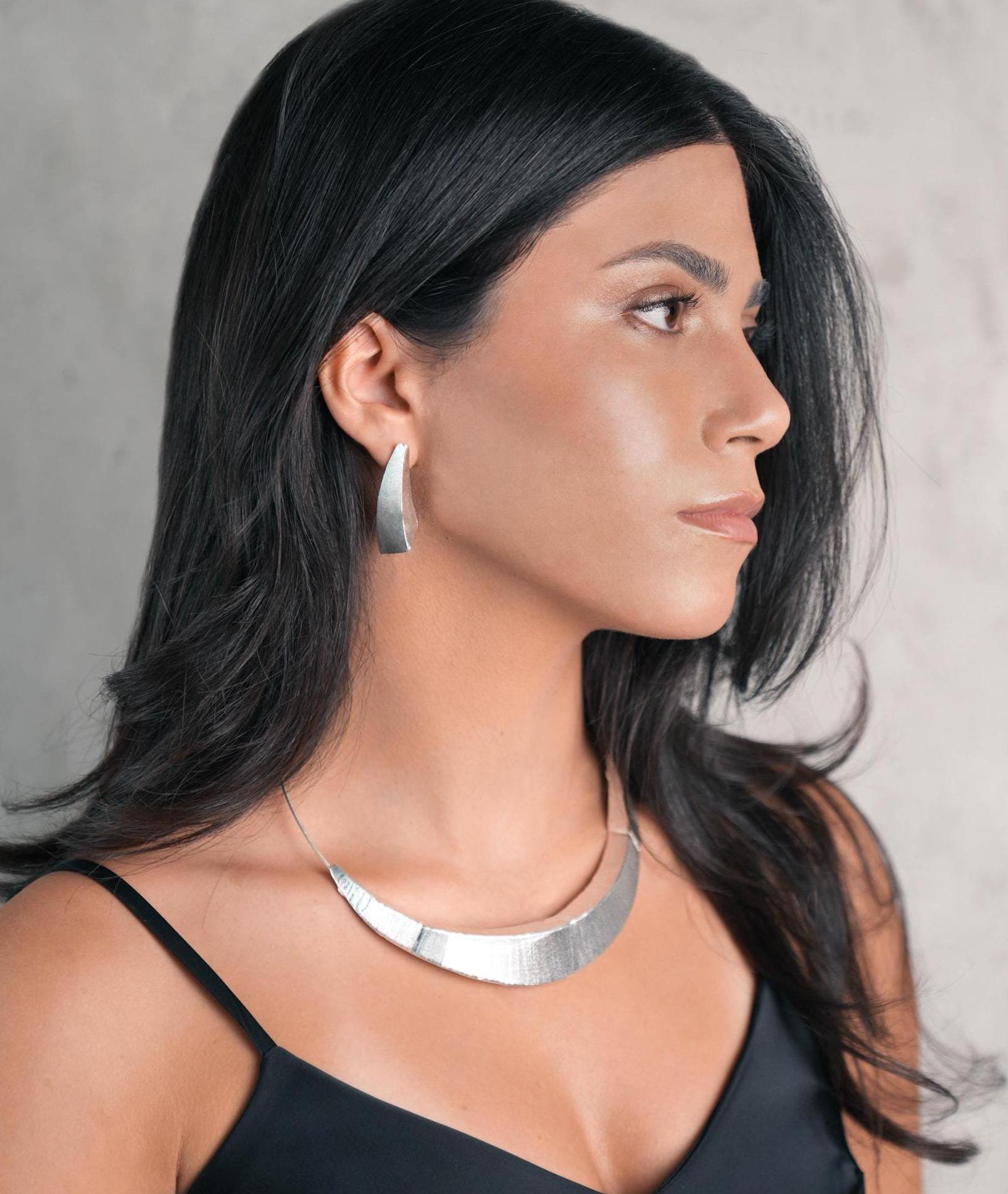 Geometric and Minimalist Silver Bib Necklace // Slim Silver Cleopatra Short Choker Necklace // Modern and Chic Short Choker Necklace