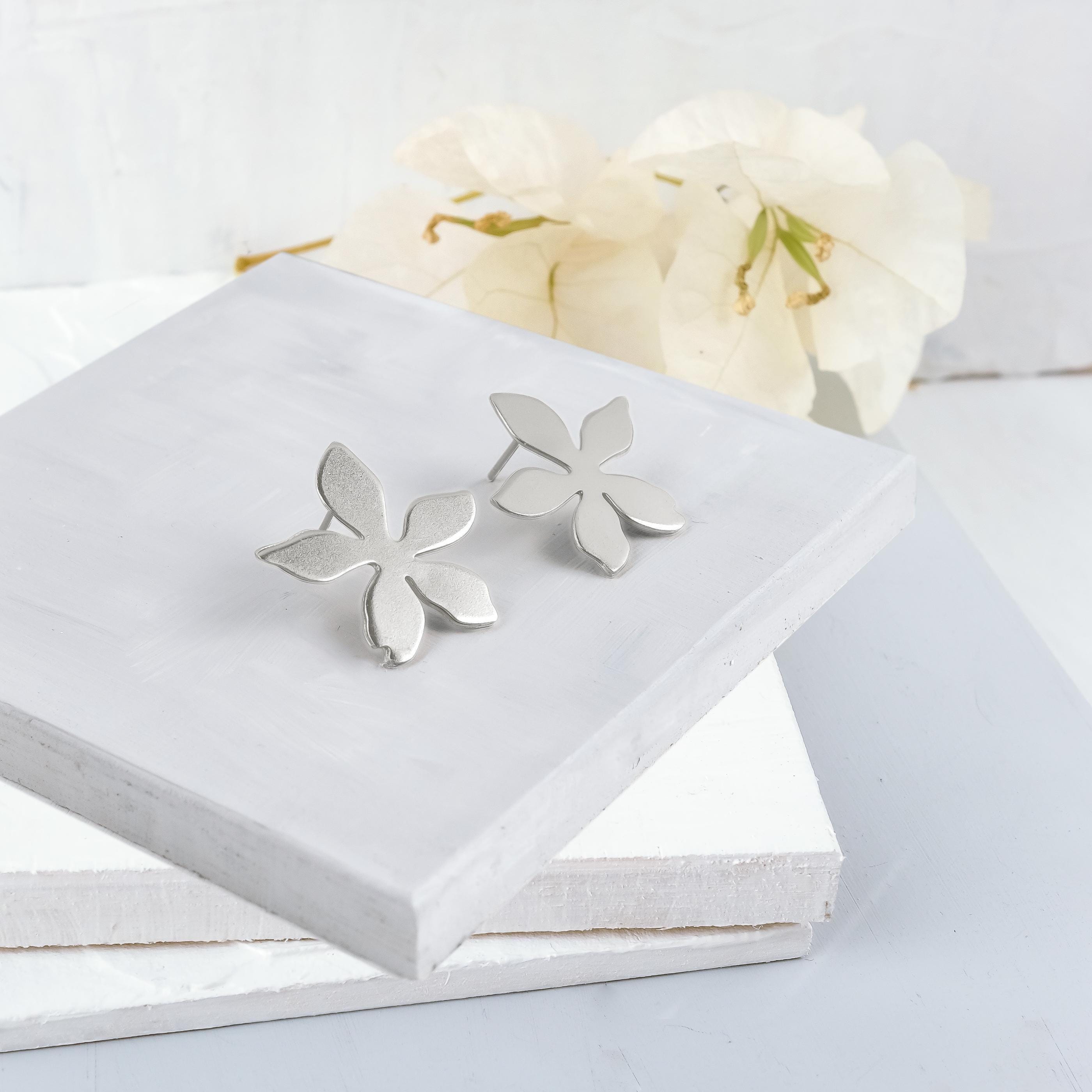 Delicate with a beautiful flower contour post earrings. Urban flower gold or silver plated post earrings.